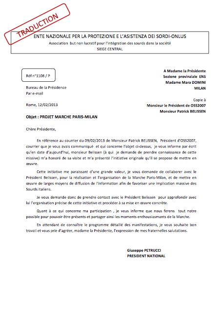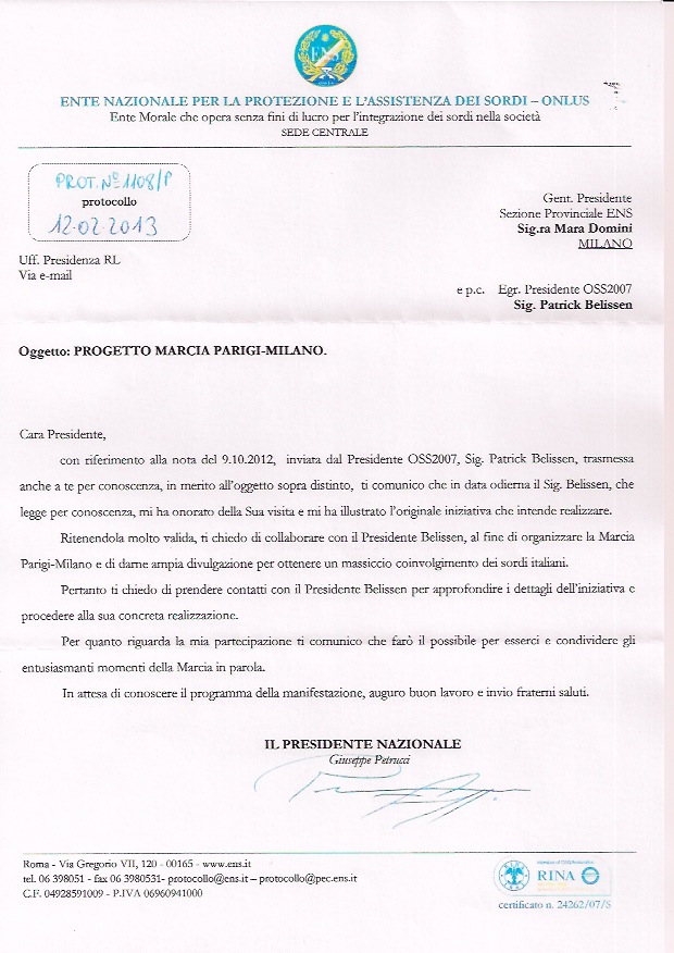 Le soutien de Giuseppe PETRUCCI, Président National d’ENS (Fédération Nationale des Sourds de l’Italie)
